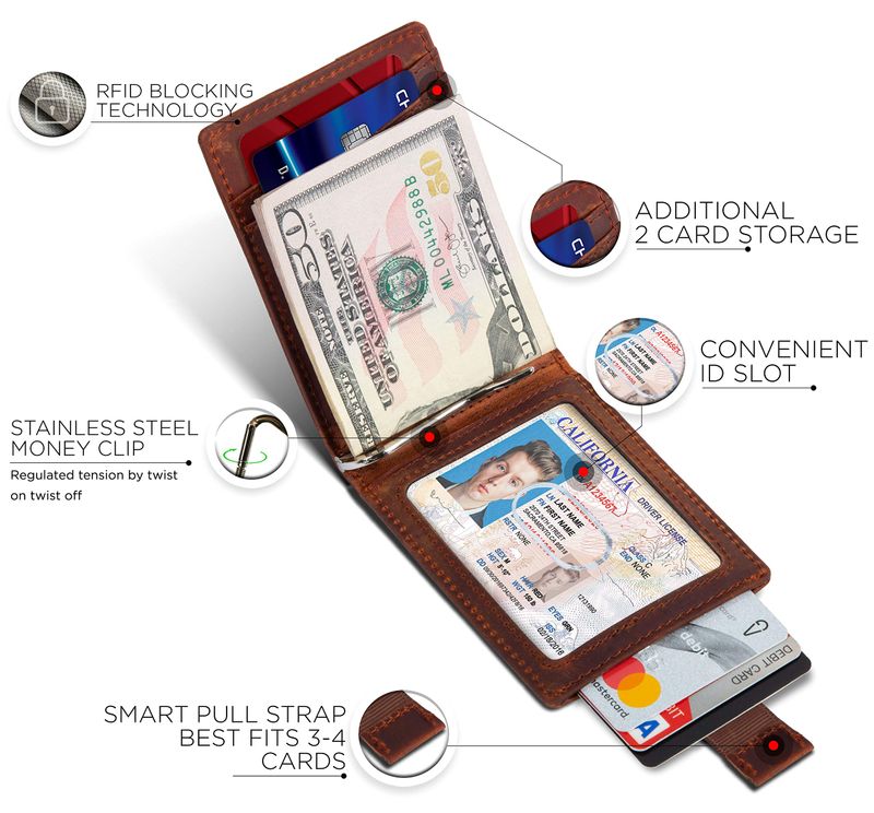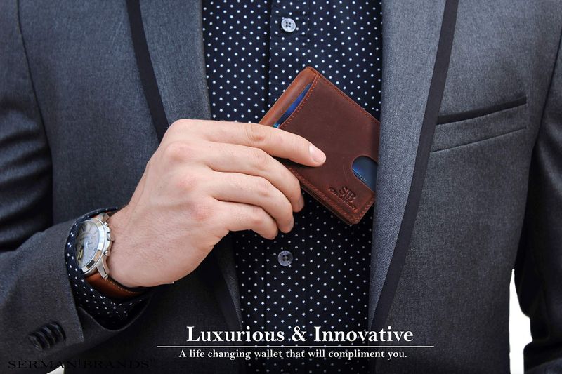 SERMAN BRANDS RFID Blocking Slim Bifold Genuine Leather Minimalist Front Pocket Wallets for Men with
