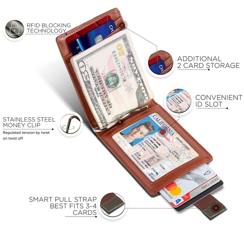 SERMAN BRANDS RFID BLOCKING SLIM BIFOLD GENUINE LEATHER MINIMALIST FRONT POCKET WALLETS FOR MEN WITH MONEY CLIP THIN MENS
