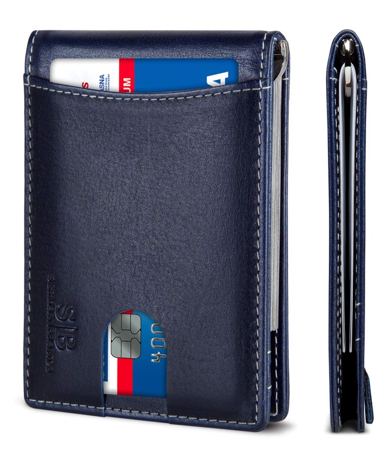 SERMAN BRANDS RFID Blocking Slim Bifold Genuine Leather Minimalist Front Pocket Wallets for Men with