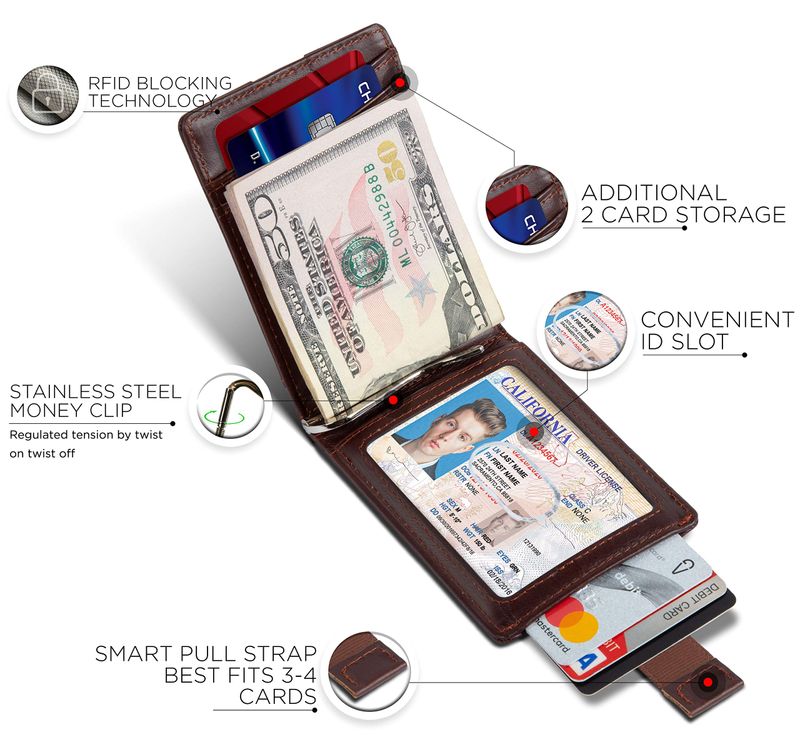 SERMAN BRANDS RFID Blocking Slim Bifold Genuine Leather Minimalist Front Pocket Wallets for Men with