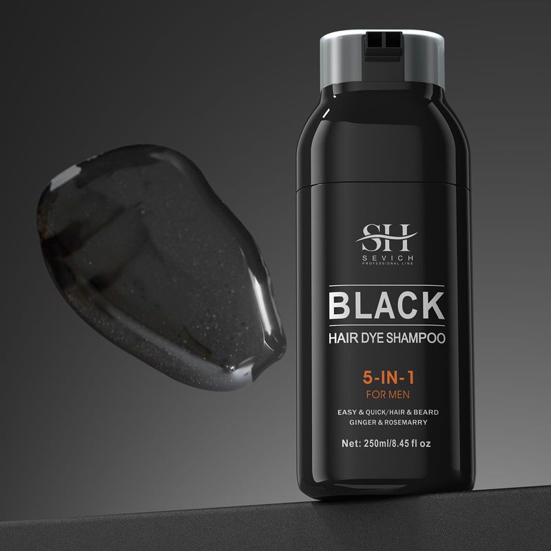SEVICH Champú de tinte negro para cabello y barba, color de cabello semipermanente, champú para