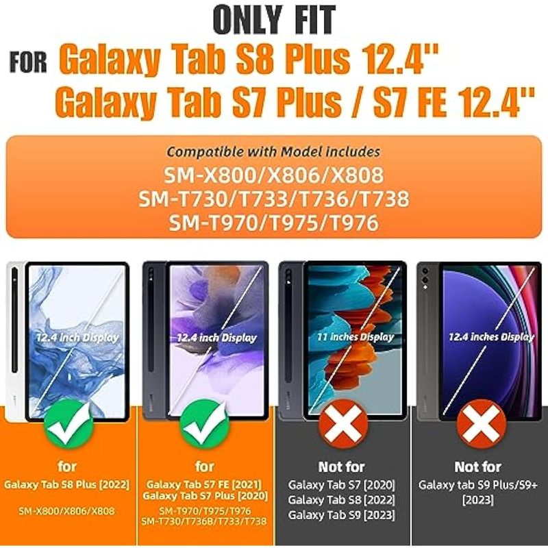 SEYMAC stock Funda para Samsung Galaxy Tab S7 FE / S8 Plus 5G Funda de 12.4 pulgadas con protector