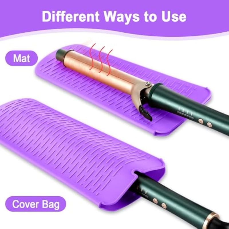 Información sobre la cantidad: recibirás 2 organizadores de herramientas de peinado para el cabello, incluyendo 1 soporte de neopreno resistente al calor y 1 bolsa de alfombrilla de silicona, cada uno de ellos tiene diferentes materiales y funciones, puedes elegir uno adecuado de acuerdo a tus necesidades reales