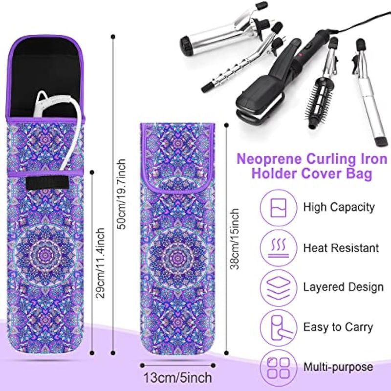 Práctico soporte para rizador: la bolsa organizadora de herramientas para alisar el cabello está hecha de material de neopreno de calidad, cuenta con un buen rendimiento resistente al calor, resistente y confiable para que lo uses durante mucho tiempo; diseño de doble capa, te permite organizar las herramientas de cabello caliente tanto como sea posible