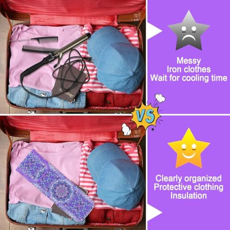 Adecuado para viajes: estas bolsas y bolsas de hierro plano resistentes al calor son herramientas prácticas cuando necesitas ir de viaje o ir de negocios, no te preocupes por que tus herramientas de cabello caliente quemen tu mesa, ahorrarán tiempo y energía, fáciles para crear varios peinados