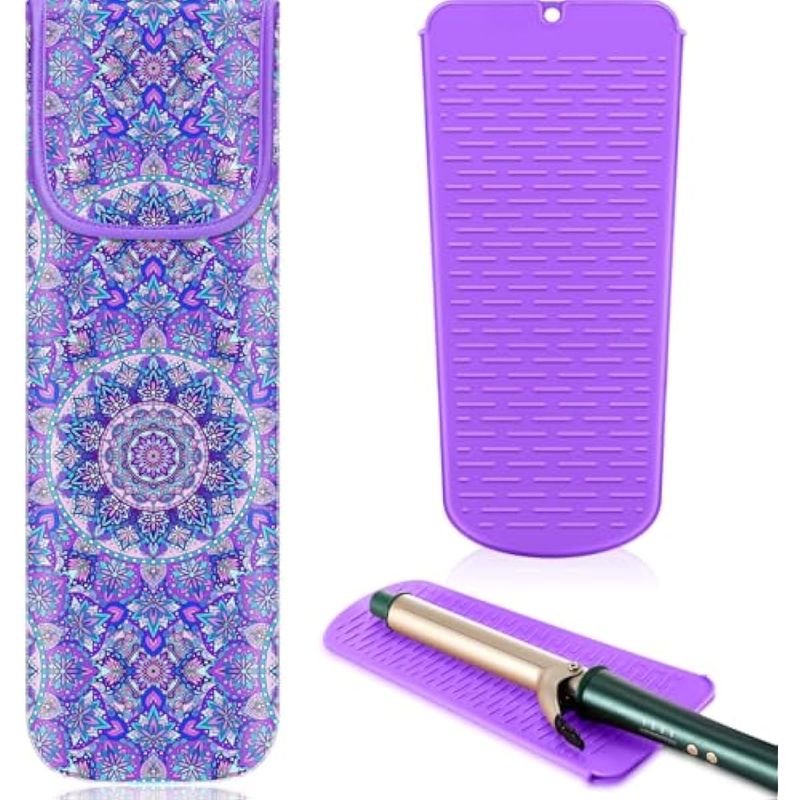 SHAPPY FUNDA DE VIAJE PARA RIZADOR, 2 PIEZAS, RESISTENTE AL CALOR, FUNDA DE HIERRO PLANO, SOPORTE DE PLANCHA DE NEOPRENO Y HERRAMIENTAS CALIENTES DE SILICONA, BOLSA PLANA (MANDRAGORA)