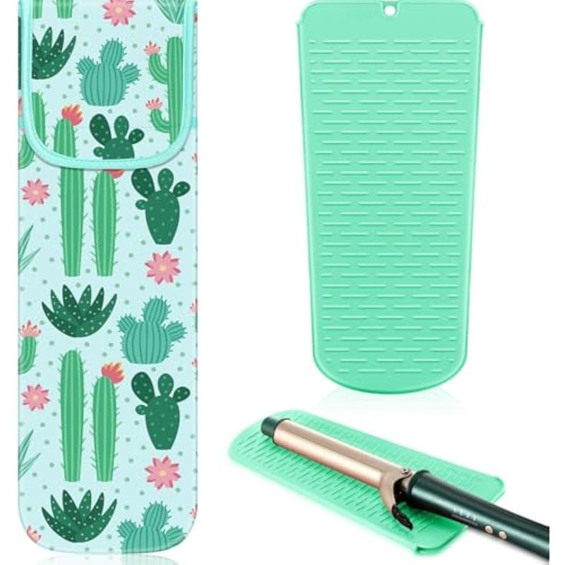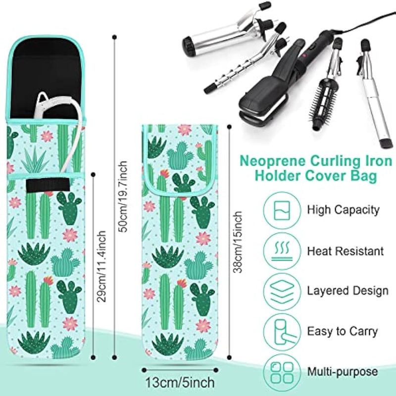 SHAPPY FUNDA DE VIAJE PARA RIZADOR, 2 PIEZAS, RESISTENTE AL CALOR, FUNDA DE NEOPRENO PARA ALISADOR Y HERRAMIENTAS CALIENTES DE SILICONA, BOLSA PLANA (ESTILO CACTUS)