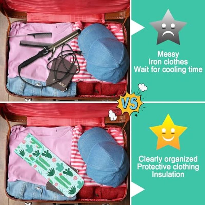 Adecuado para viajes: estas bolsas y bolsas de hierro plano resistentes al calor son herramientas prácticas cuando necesitas ir de viaje o ir de negocios, no te preocupes por que tus herramientas de cabello caliente quemen tu mesa, ahorrarán tiempo y energía, fáciles para crear varios peinados
