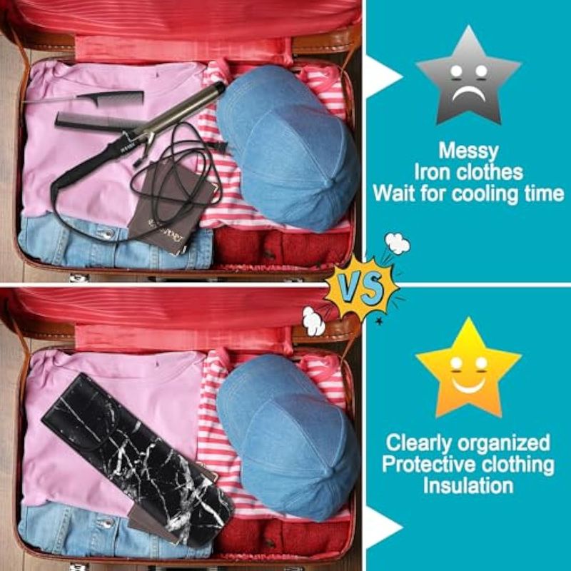 Adecuado para viajes: estas bolsas y bolsas de hierro plano resistentes al calor son herramientas prácticas cuando necesitas ir de viaje o ir de negocios, no te preocupes por que tus herramientas de cabello caliente quemen tu mesa, ahorrarán tiempo y energía, fáciles para crear varios peinados