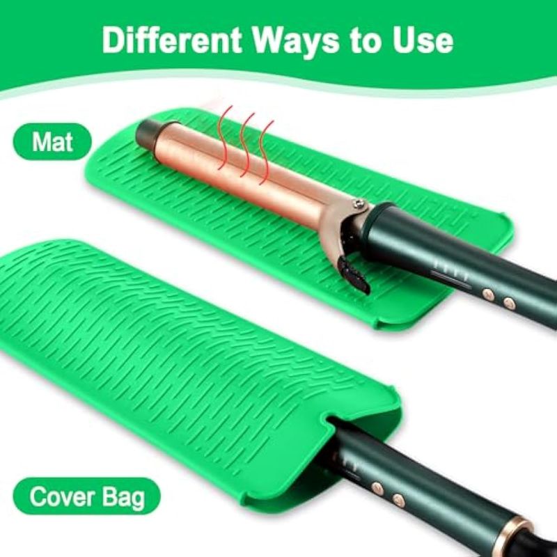 Bolsa útil para alfombrilla: esta funda de hierro plano para rizar está hecha de material de silicona de calidad, es suave y flexible, se puede doblar a la mayoría de las formas para ayudarte a proteger mejor tus manos, el diseño en forma de bolsa para que puedas poner tu rizador en él para evitar que tu escritorio u otros artículos se quemen por el rizador de alta temperatura