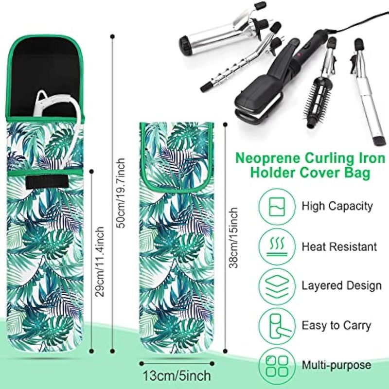 Práctico soporte para rizador: la bolsa organizadora de herramientas para alisar el cabello está hecha de material de neopreno de calidad, cuenta con un buen rendimiento resistente al calor, resistente y confiable para que lo uses durante mucho tiempo; diseño de doble capa, te permite organizar las herramientas de cabello caliente tanto como sea posible