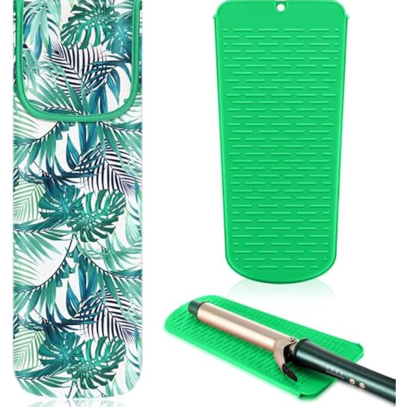 Información sobre la cantidad: recibirás 2 organizadores de herramientas de peinado para el cabello, incluyendo 1 soporte de neopreno resistente al calor y 1 bolsa de alfombrilla de silicona, cada uno de ellos tiene diferentes materiales y funciones, puedes elegir uno adecuado de acuerdo a tus necesidades reales