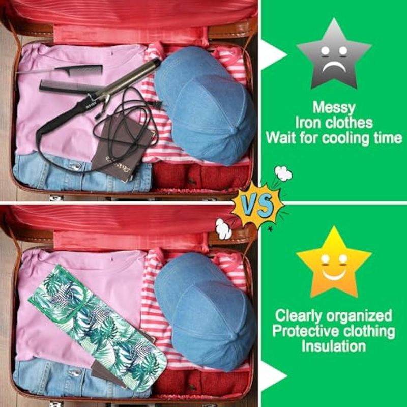 Adecuado para viajes: estas bolsas y bolsas de hierro plano resistentes al calor son herramientas prácticas cuando necesitas ir de viaje o ir de negocios, no te preocupes por que tus herramientas de cabello caliente quemen tu mesa, ahorrarán tiempo y energía, fáciles para crear varios peinados