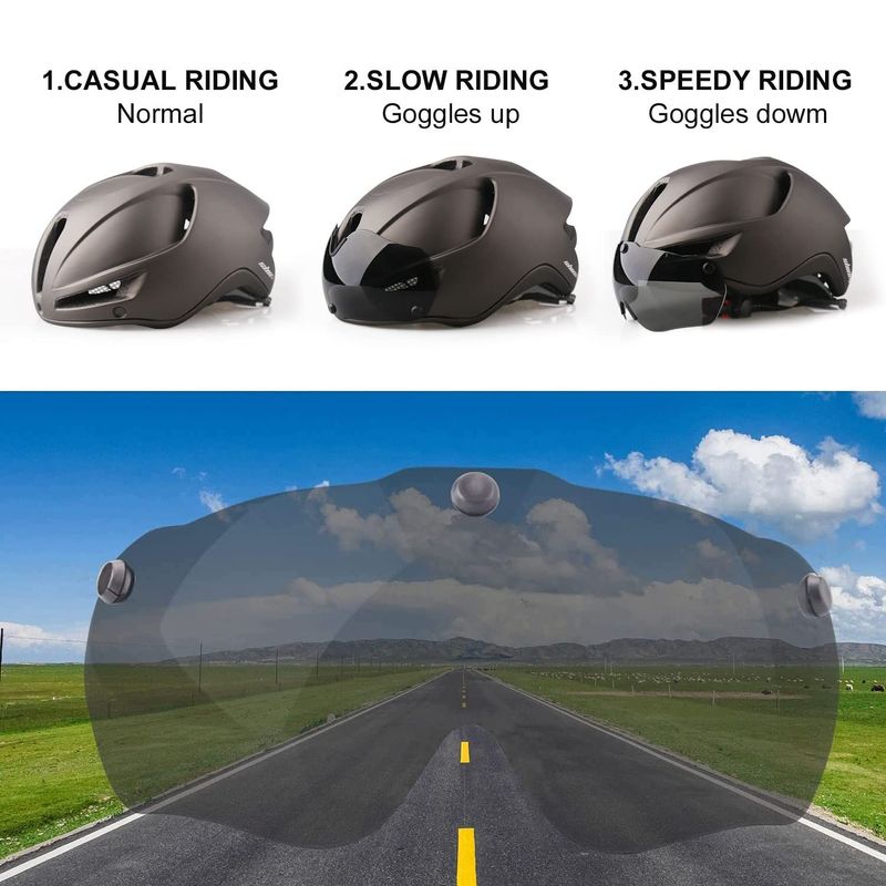 Shinmax Casco de bicicleta para adultos, casco de bicicleta con gafas magnéticas extraíbles y luz