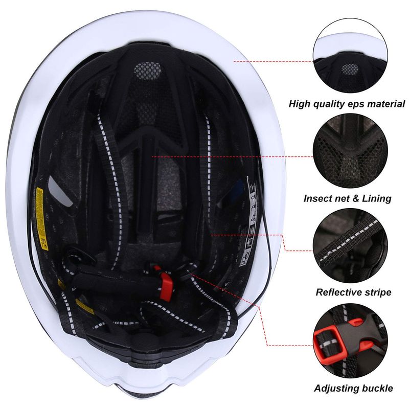 Tiras reflectantes ajustables: cascos de bicicleta para hombres y mujeres diseñados con tiras reflectantes ajustables. Su función es la misma que la luz LED. Puede ayudar a otros ciclistas detrás de ti a reconocer claramente tu dirección, más seguro y brillante en el ciclismo nocturno.