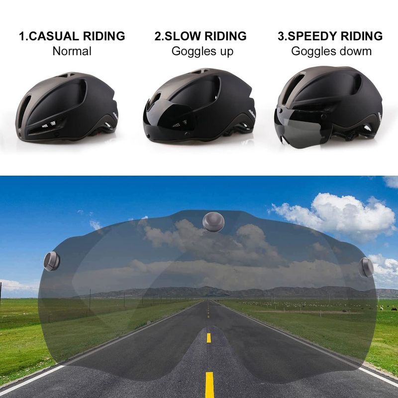Gafas magnéticas desmontables: el casco de bicicleta para adultos viene con gafas magnéticas desmontables, se puede utilizar como lentes de sol con 3 imanes fuertes que hacen que sea fácil de quitar o pegar, no solo protege tu cara contra el viento y la arena, sino que también bloquea la fuerte luz ultravioleta, protección UV400. El casco de bicicleta para adultos puede adaptarse a bicicletas de montaña y ciclismo de carretera.