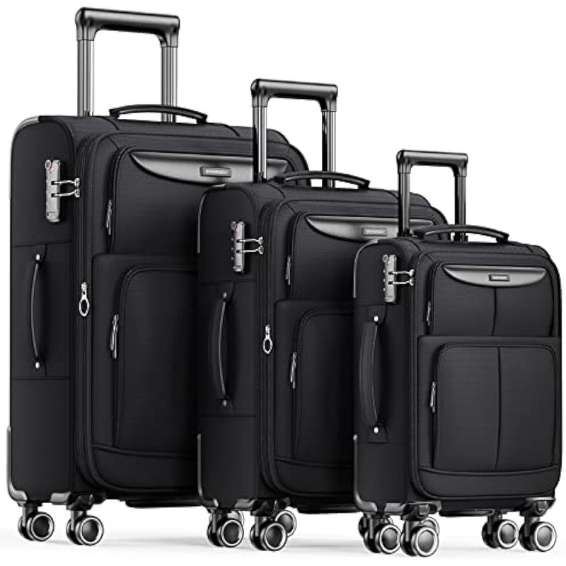 SHOWKOO - JUEGOS DE 3 MALETAS BLANDAS, EXPANDIBLES, LIGERAS Y DURADERAS, CON RUEDAS DOBLES GIRATORIAS, CANDADO TSA (20 PULGADAS/24 PULGADAS/28 PULGADAS), NEGRO