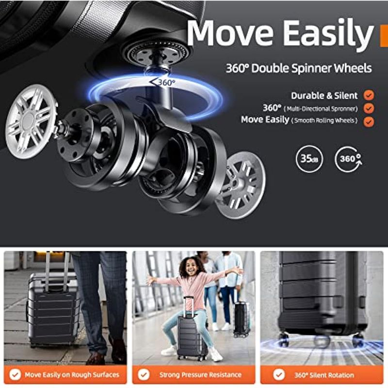 Ruedas giratorias multidireccionales silenciosas y suaves: Benefíciate de las nuevas bolas de TPU suave y lubricantes dentro de las ruedas, el equipaje se mueve muy silencioso y sin problemas con ruedas dobles giratorias de 360°. El equipaje ha superado la prueba de caída perfecta. El equipaje también ha pasado la prueba de caminar una prueba de calidad de equipaje profesional: el equipaje puede cargar 33.06 libras y moverse 24.85 millas a una velocidad de 6.21 mih. La mejor opción para viajes a largo plazo y viajes de negocios.