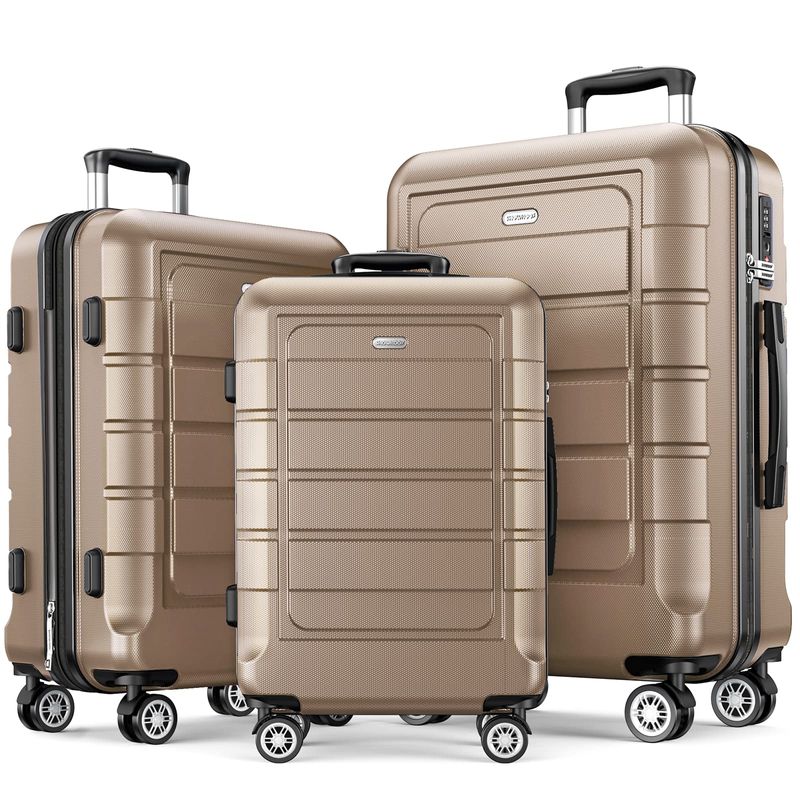 EQUIPAJEVALIJASSHOWKOO Sets de equipaje, maleta ampliable con doble ruedas, bloqueo TSA, 3pcs, Gris, talla única,