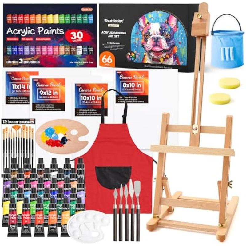 ARTE, LIBRERÍA Y OFICINAMATERIALES DE ARTEShuttle Art - Juego de 66 pinturas acrílicas, juego de pintura acrílica de 30 colores, caballete de