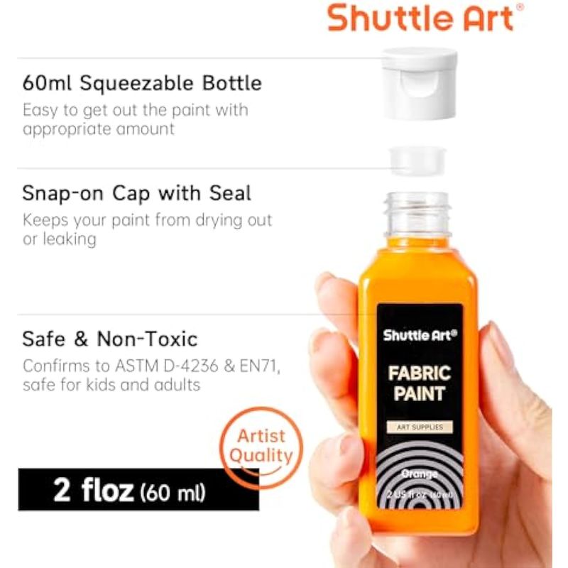 Shuttle Art - Pintura de tela suave permanente de 18 colores en botellas (2.0 fl oz/2 onzas) con