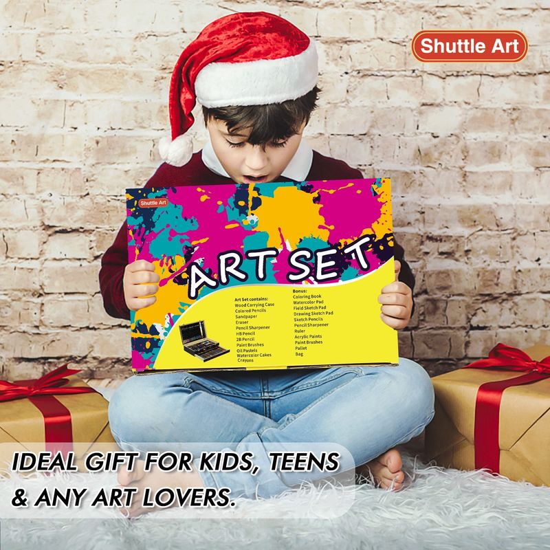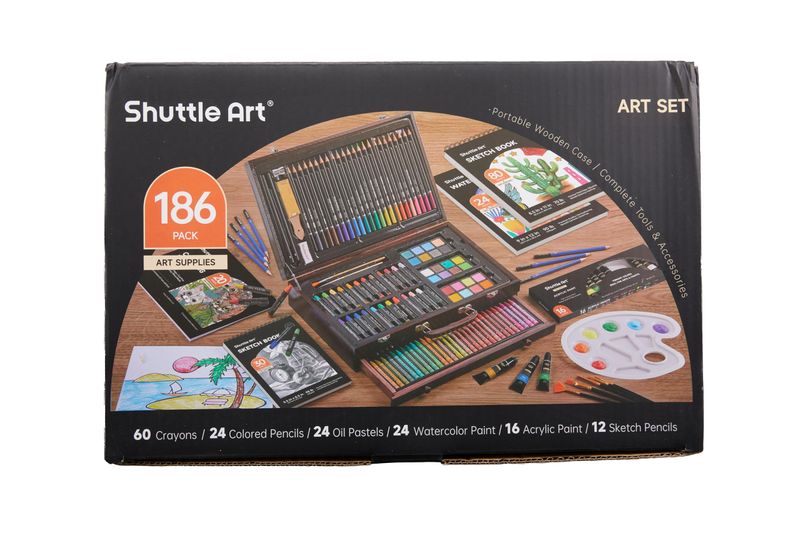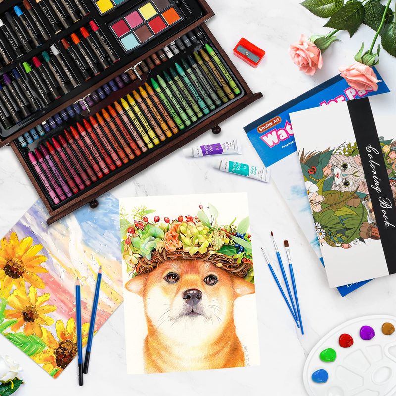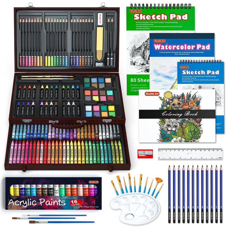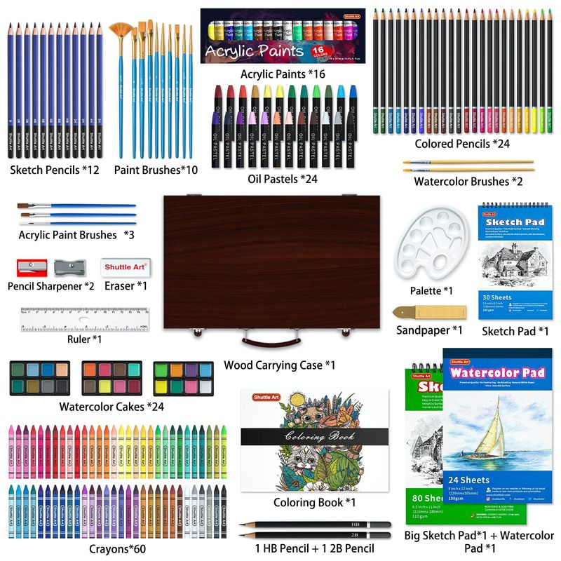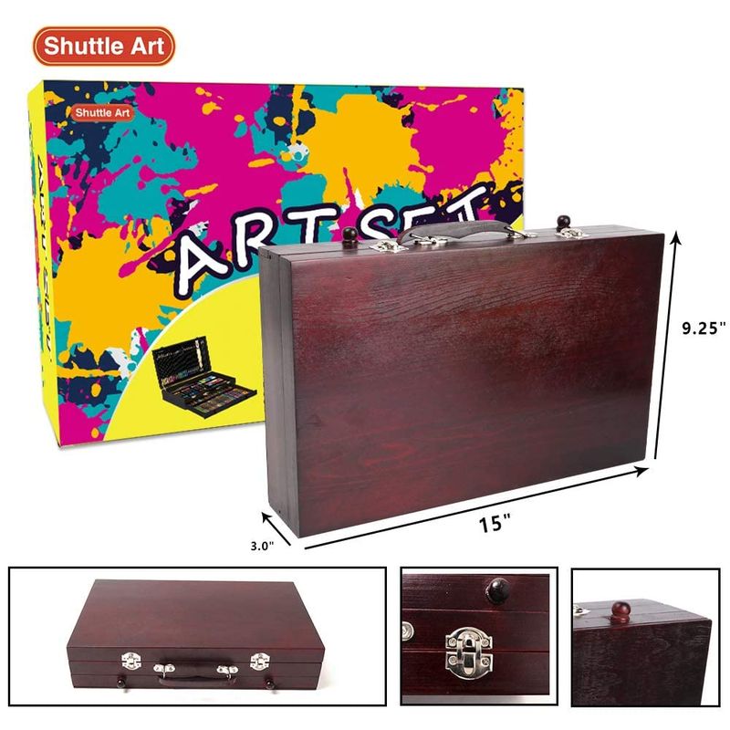 Shuttle Art Juego de arte de lujo de 118 piezas, suministros de arte en estuche de madera, kit de