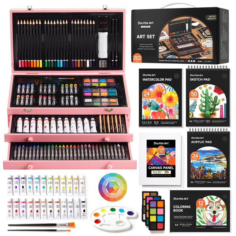 Shuttle Art Juego de arte de lujo de 118 piezas, suministros de arte en estuche de madera, kit de
