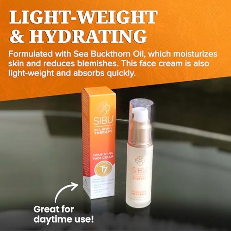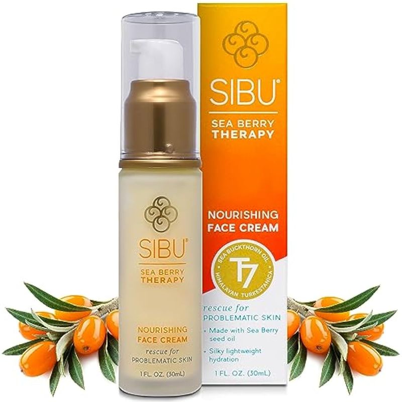 sibu Crema facial nutritiva de espino amarillo (1 onza), crema facial ligera e hidratante, increíble