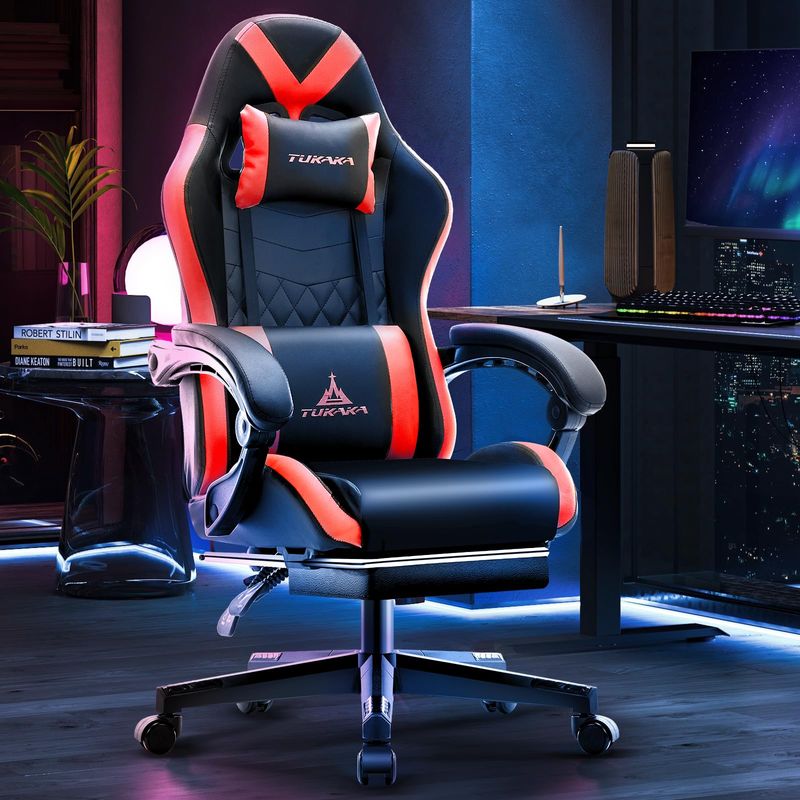 HOGARAMOBLAMIENTOMUEBLES DE OFICINASilla de juegos blanca, silla ergonómica de escritorio de oficina con reposapiés, cojín de resorte