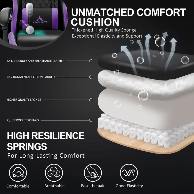 ?Cojín de máxima comodidad?Este cojín de asiento se compone de resortes de bolsillo resistentes, esponja gruesa de 3 capas de alta calidad y algodón. Resistente al colapso, elástico, transpirable y cómodo como un sofá, manteniéndote fresco y cómodo en todo momento. Los resortes distribuyen mejor la presión de las caderas para un apoyo adecuado y una mayor comodidad. Cómodo para sentarse durante mucho tiempo en juegos y trabajo.