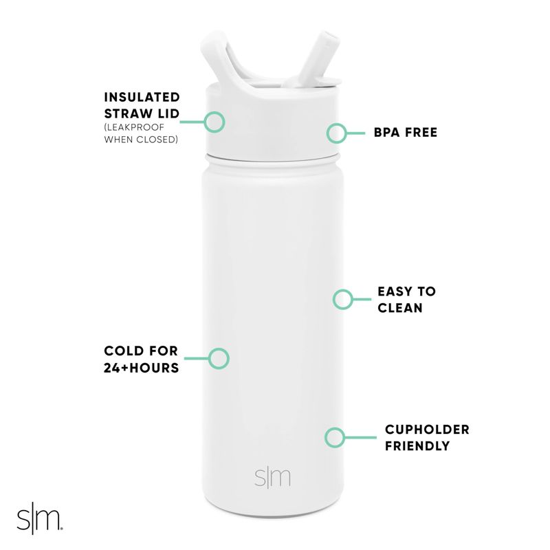 SIMPLE MODERN BOTELLA DE AGUA REUTILIZABLE CON TAPA PARA BEBER Y CON PAJILLA, DE ACERO INOXIDABLE CON AISLAMIENTO AL VACíO, PARA DEPORTES, COLECCIóN SUMMIT, 32 ONZAS, BLANCO (WINTER WHITE)