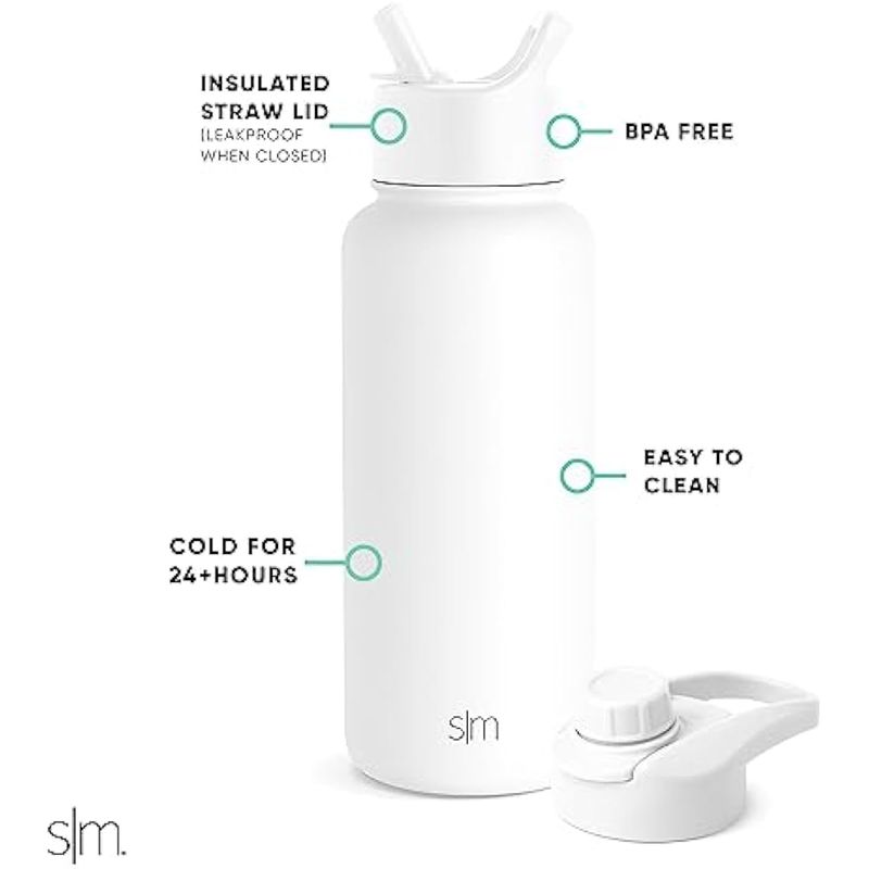SIMPLE MODERN BOTELLA DE AGUA REUTILIZABLE CON TAPA PARA BEBER Y CON PAJILLA, DE ACERO INOXIDABLE CON AISLAMIENTO AL VACíO, PARA DEPORTES, COLECCIóN SUMMIT, 32 ONZAS, BLANCO (WINTER WHITE)