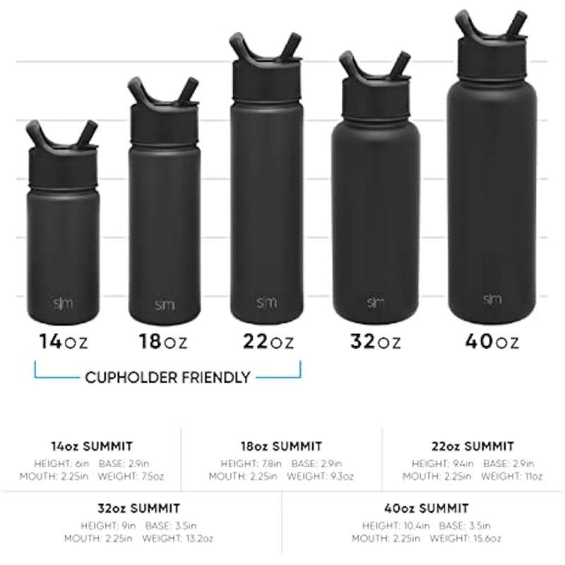 Simple Modern Botella de agua reutilizable con tapa para beber y con pajilla, de acero inoxidable