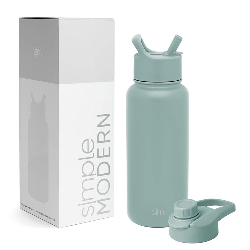Simple Modern Botella de agua reutilizable con tapa para beber y con pajilla, de acero inoxidable