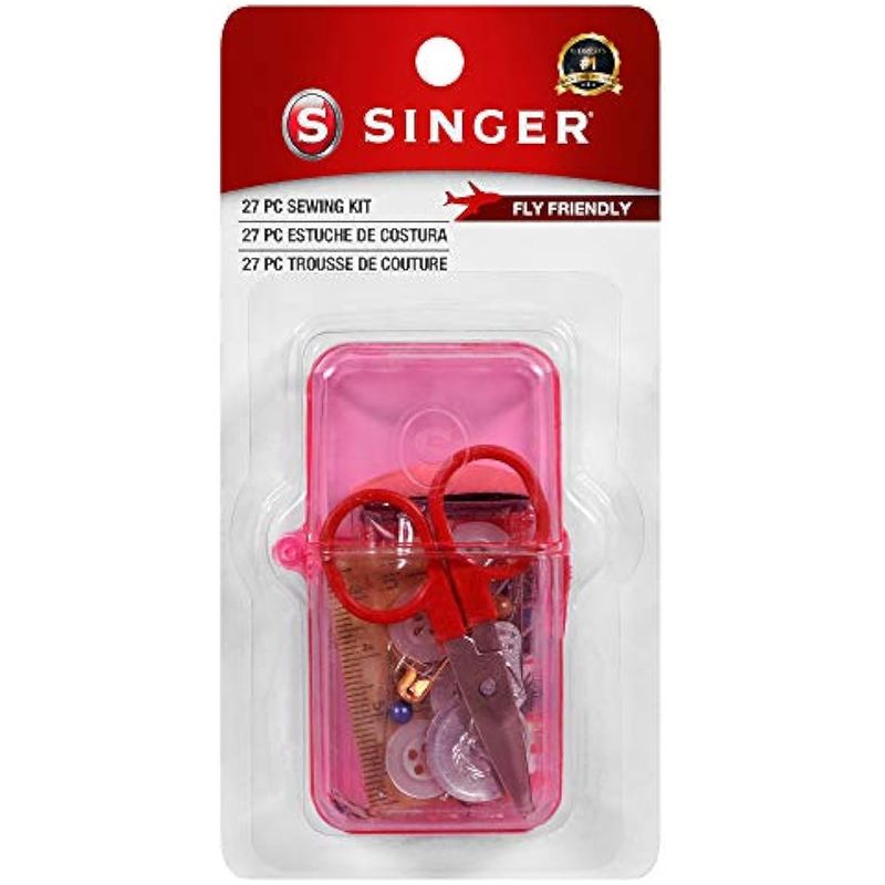Singer kit de costura en estuche con forma de huevo, color rosa.