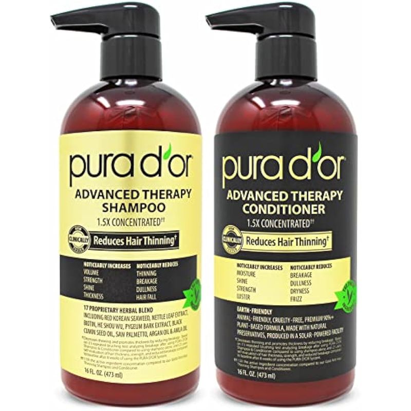 SISTEMA DE CHAMPú Y ACONDICIONADOR DE TERAPIA AVANZADA PURA D'OR DE 16 ONZAS FLUIDAS