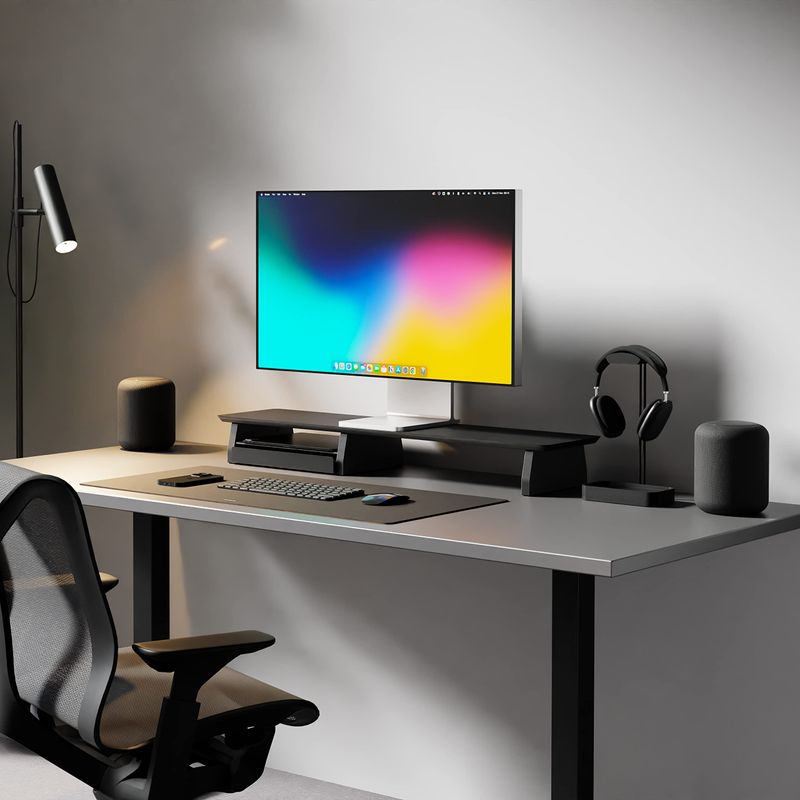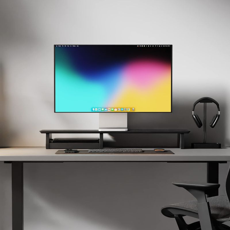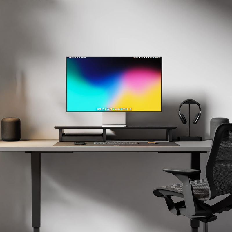 Sistema de soporte para monitor de escritorio para configuración de doble pantalla, madera negra