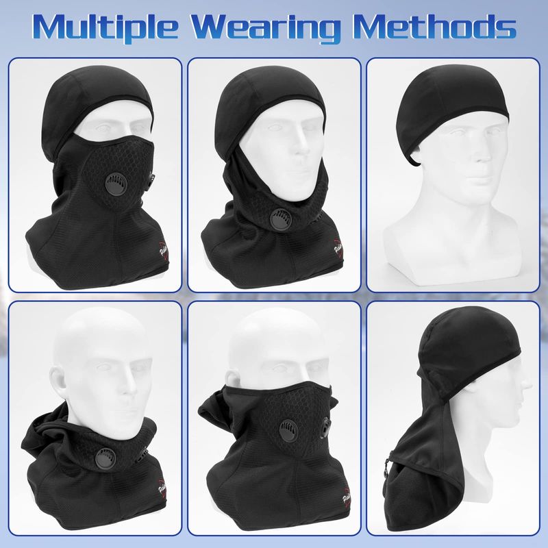 Múltiples estilos: balaclava abierta y cerrada, bufanda, sombrero, gorro de cuello. Se puede llevar solo o utilizar como protección y aislamiento adicional bajo cualquier casco o sombrero. Cuello extra largo que permite que la balaclava se cuelgue bajo tu camisa o chaqueta para mantenerte protegido del viento.