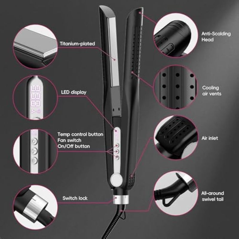 SKIMI Moldeador de flujo de aire, plancha plana de titanio, rizador profesional con rejillas de