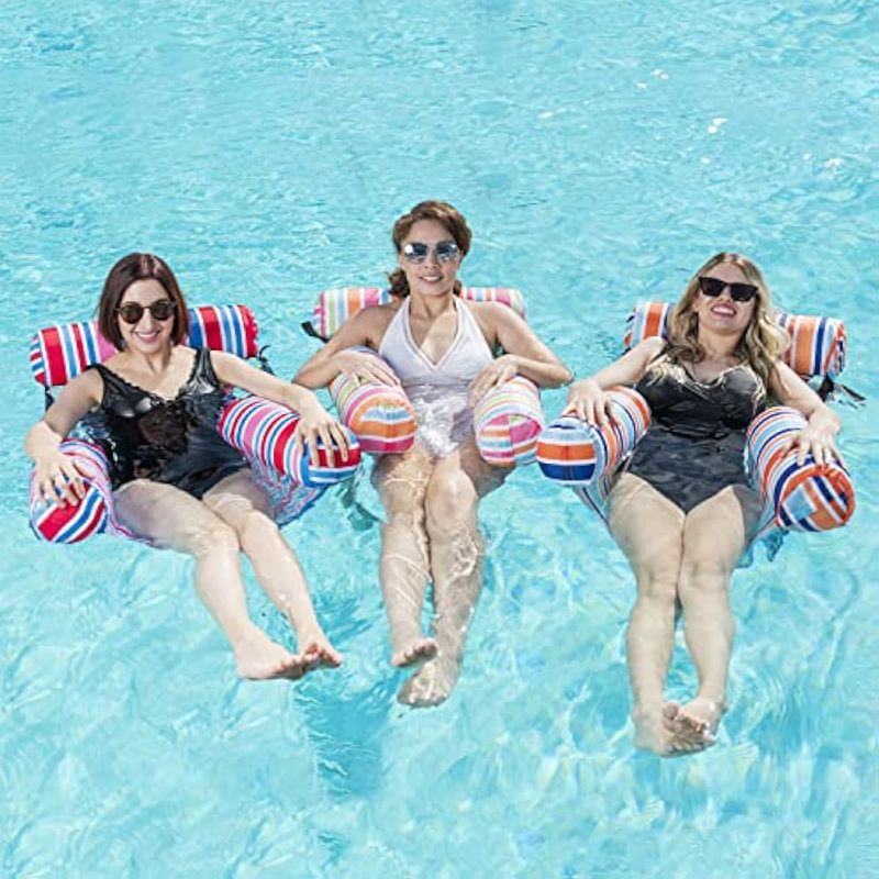 Sloosh 3 paquetes de sillas de piscina, hamaca con patrón de rayas, silla flotante de agua para