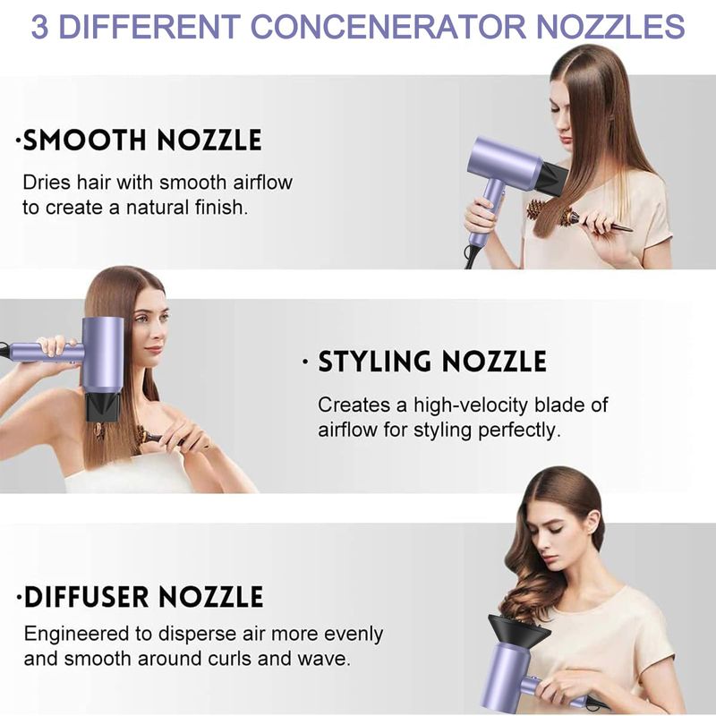 slopehill Secador de pelo iónico profesional, potente secadora de bajo ruido de secado rápido de