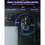 SM802 - Ratón inalámbrico blanco para juegos, 10000 DPI, triple modo con cable/BT 5.0/2.4GHz ratón