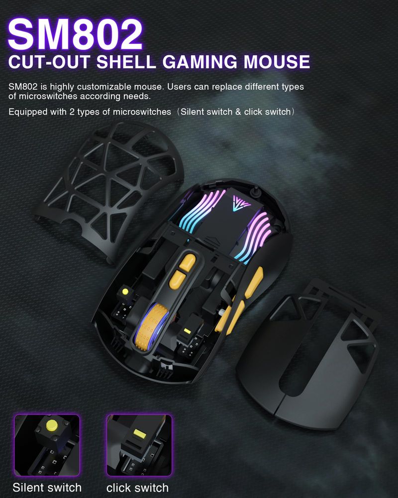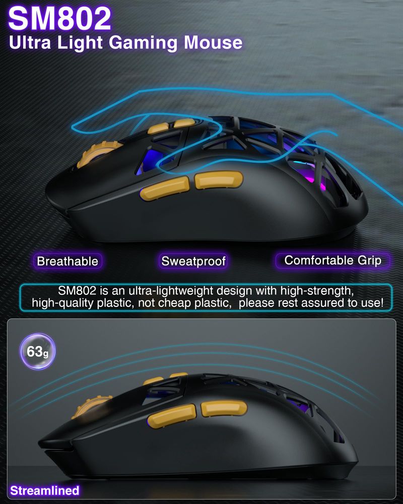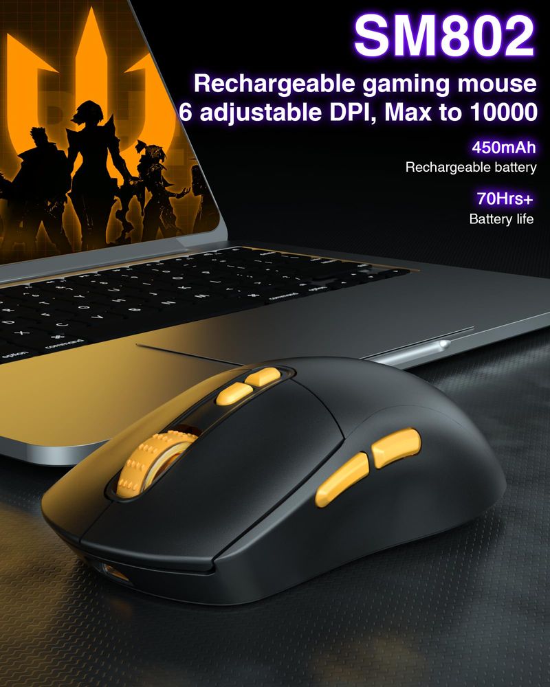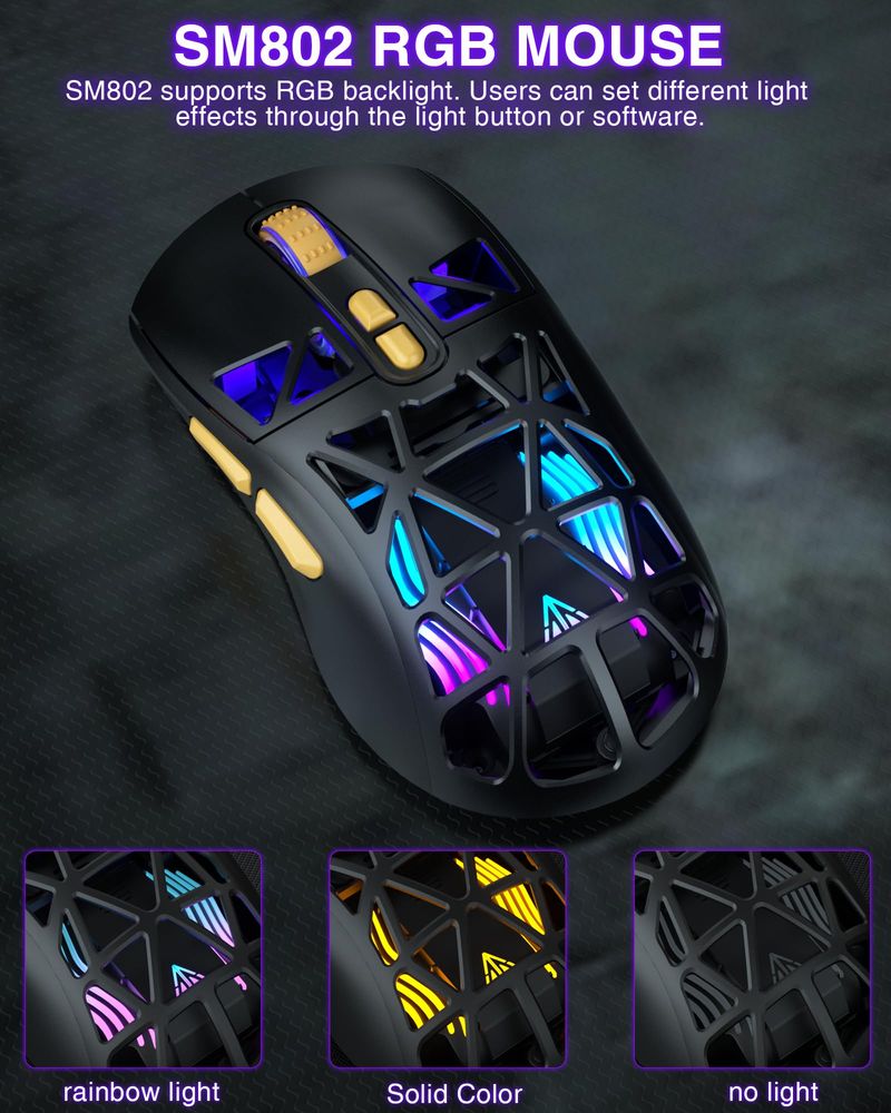 INFORMÁTICAACCESORIOS DE INFORMATICAMOUSESM802 - Ratón inalámbrico blanco para juegos, 10000 DPI, triple modo con cable/BT 5.0/2.4GHz ratón