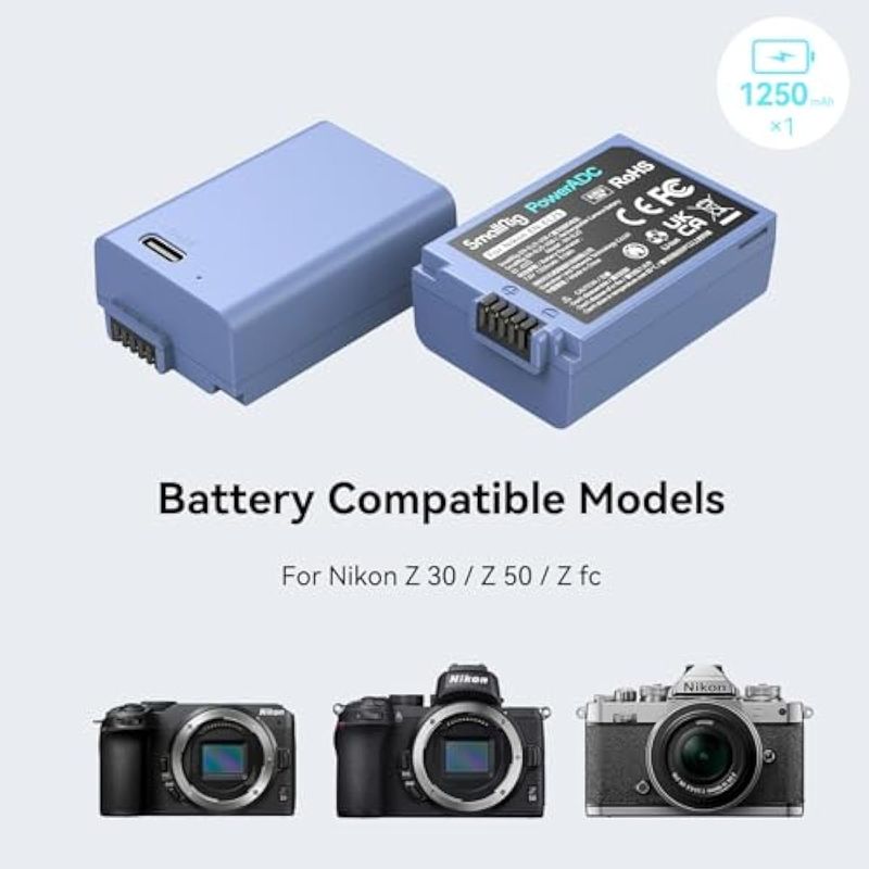 SMALLRIG EN-EL25 BATERíA DE REPUESTO USB-C DE 1250 MAH PARA NIKON Z30 / Z50 / Z FC, BATERíA RECARGABLE DE CáMARA DE CARGA COMPLETA DE 1.75 H PARA NIKON Z30, Z50, Z FC, NARANJA - 4967