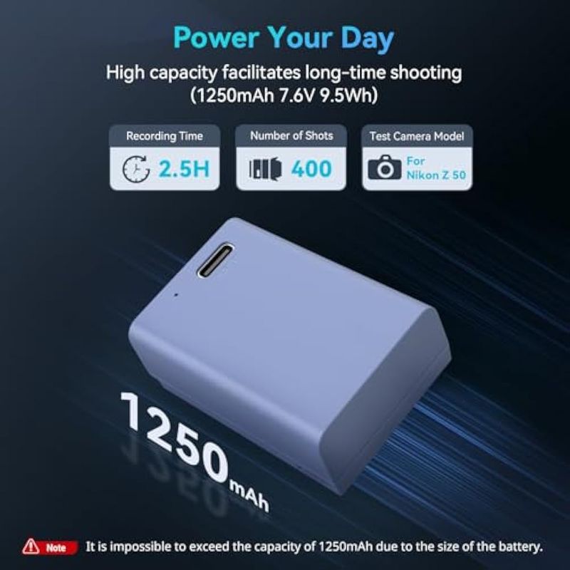 Batería de repuesto para Nikon EN-EL25: la batería EN-EL25 es adecuada para Nikon Z 30, Z 50, Z fc . Batería completamente decodificada, no tienes que preocuparte por la ventana emergente de advertencia de que la batería dañará la cámara.