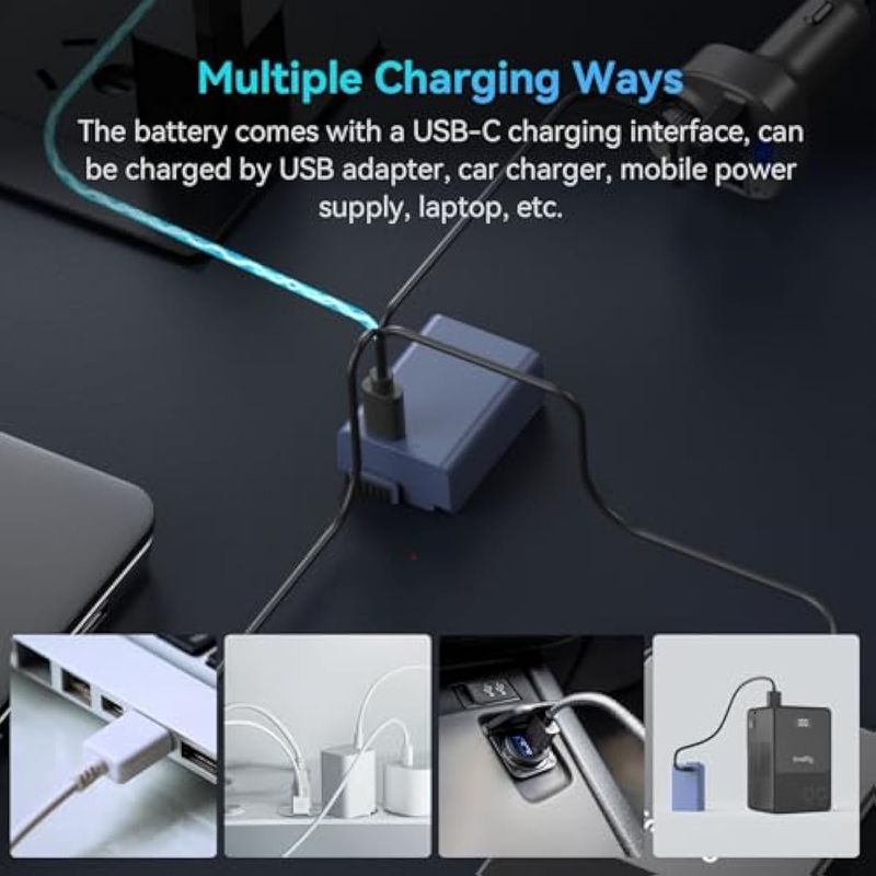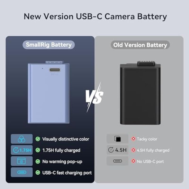 Múltiples opciones de carga: la batería recargable SmallRig EN-EL25 USB-C 4967 para cámara se puede cargar desde un banco de energía, regleta de alimentación, cargador de coche u otro cargador dedicado. Cargue rápidamente la batería conectándose a un cargador portátil o cargador de pared utilizando el cable de carga USB tipo A a tipo C suministrado. También compatible con el cargador original para Nikon.