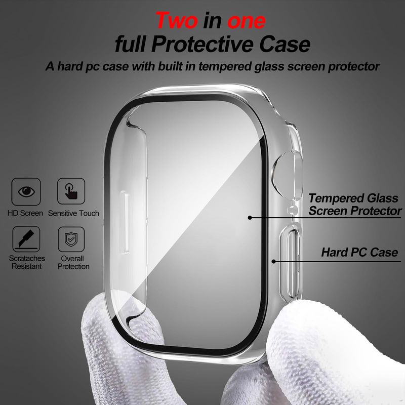 TELEFONIASMARTWATCHSmiling - Paquete de 2 fundas protectoras de pantalla de vidrio templado integradas compatibles con