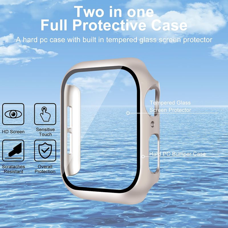 TELEFONIASMARTWATCHSmiling - Paquete de 2 fundas protectoras de pantalla de vidrio templado integradas compatibles con