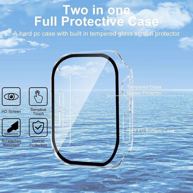 Compatible con: esta funda es compatible con Apple Watch Series 9 2023Series 8Series 7 de 1.614 pulgadas. Recibirás 2 fundas para Apple Watch con protector de pantalla de vidrio templado integrado.