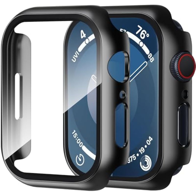 TELEFONIASMARTWATCHSmiling Paquete de 2 fundas protectoras de pantalla de vidrio templado integradas compatibles con